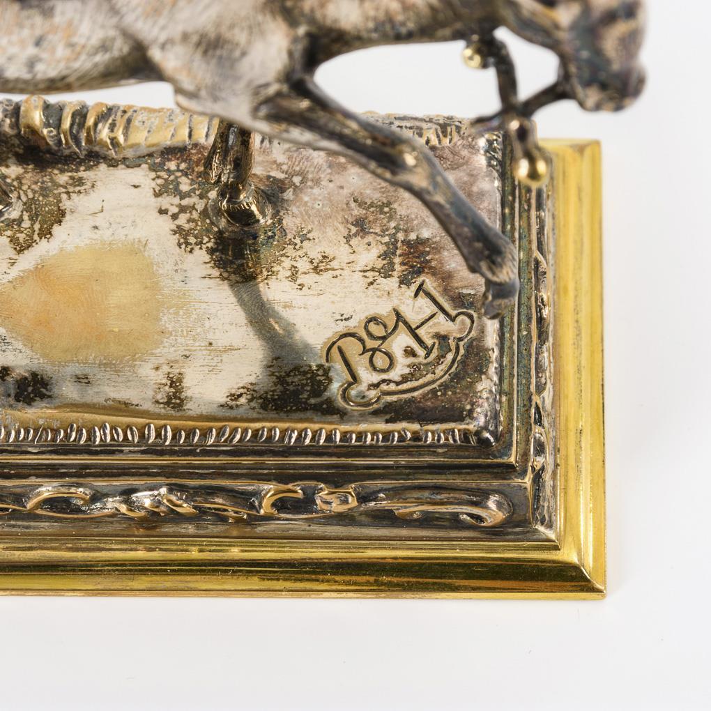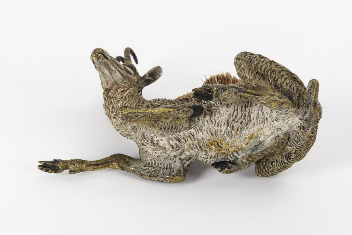 Bronze mostly silver plated. Inscribed with monogram. 12 x 13 x 6.5 cm.