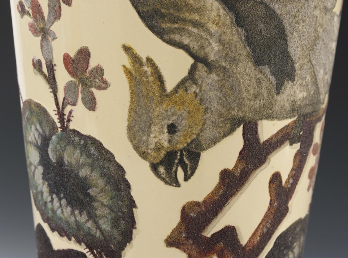 Large bar vase with yellow-crested cockatoo and begonia decor. Villeroy & Boch, Dresden.