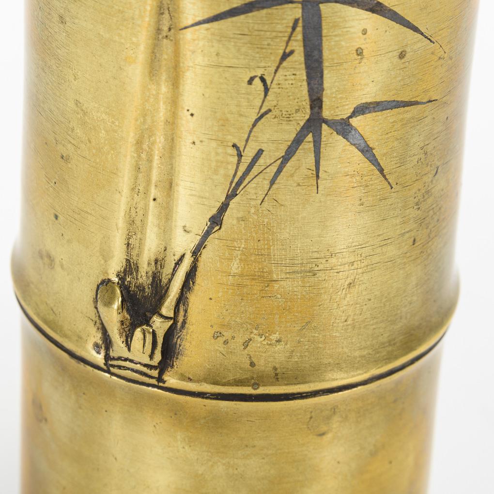 Elegant bronze brush holder in the shape of a bamboo segment.