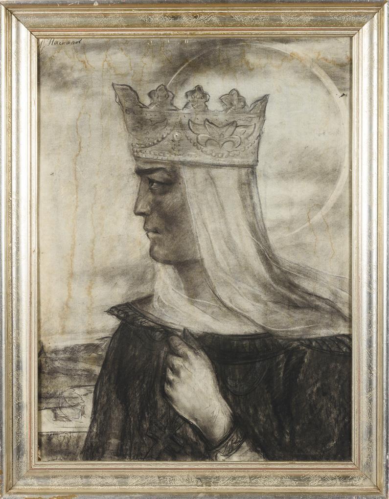 Profile portrait of St. Olga with crown. She was the regent of Kievan Rus from 945 to 960. Water damage.