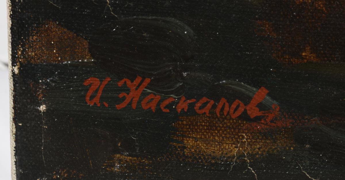 Oil/canvas. Signed in Cyrillic lower left, inscribed/titled in Cyrillic on verso. Dated: 1985.