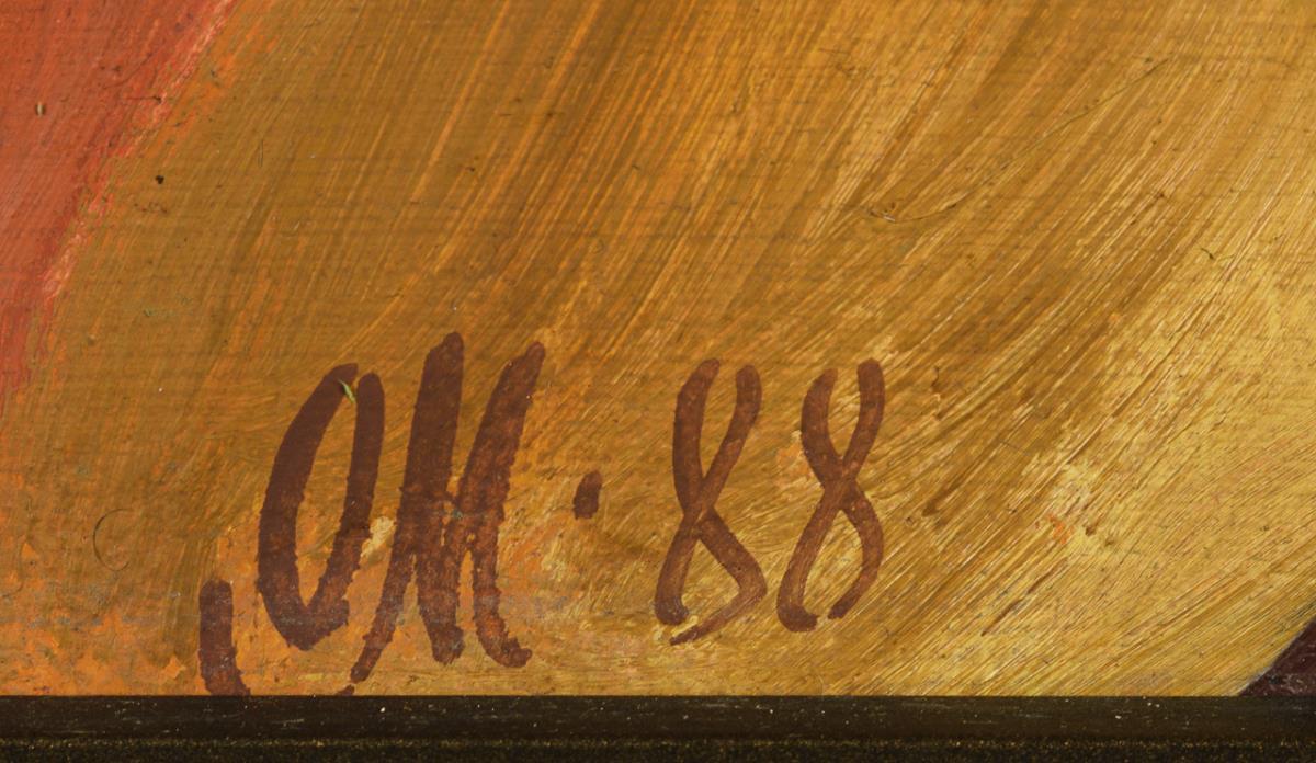 Tempera / painting cardboard. Monogrammed at bottom center, inscribed/titled in Cyrillic on verso.