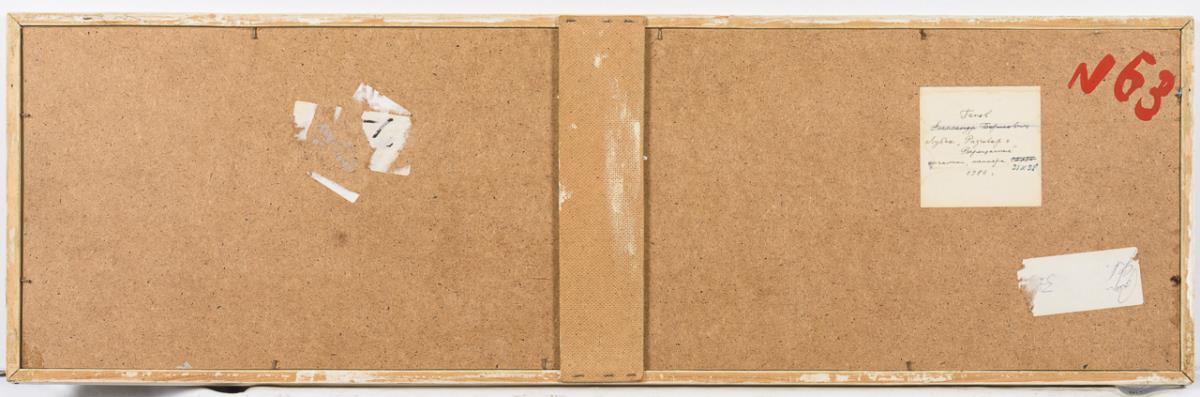 Tempera/wood. Signed in Cyrillic lower right, inscribed/titled in Cyrillic on verso. Dated: 1986.