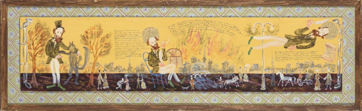 Tempera/painted cardboard. Inscribed/titled in Cyrillic on verso. Dated: 1986.