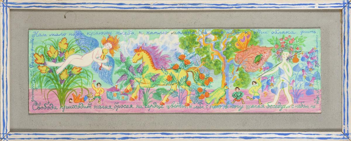 Tempera/painting cardboard. Inscribed/titled in Cyrillic on verso. Dated: 1986.