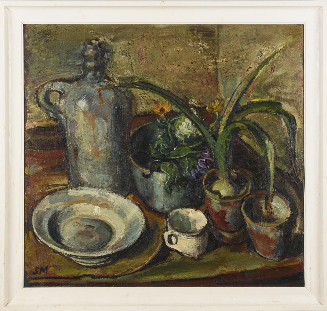 Monogrammist "SM": Kitchen Still Life with Flowers