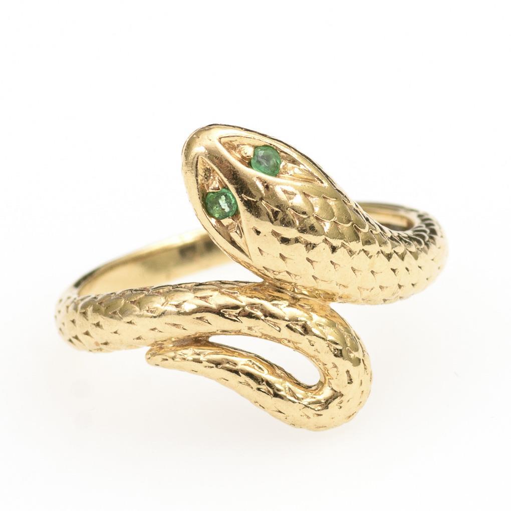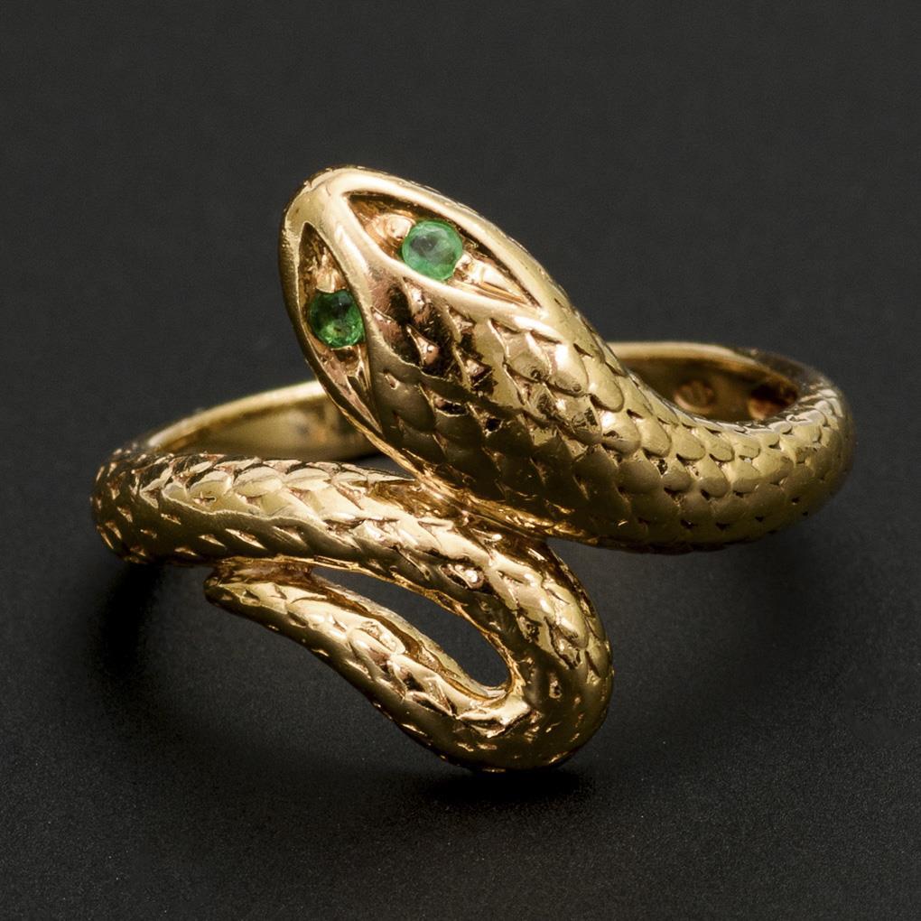 Snake ring with emeralds.