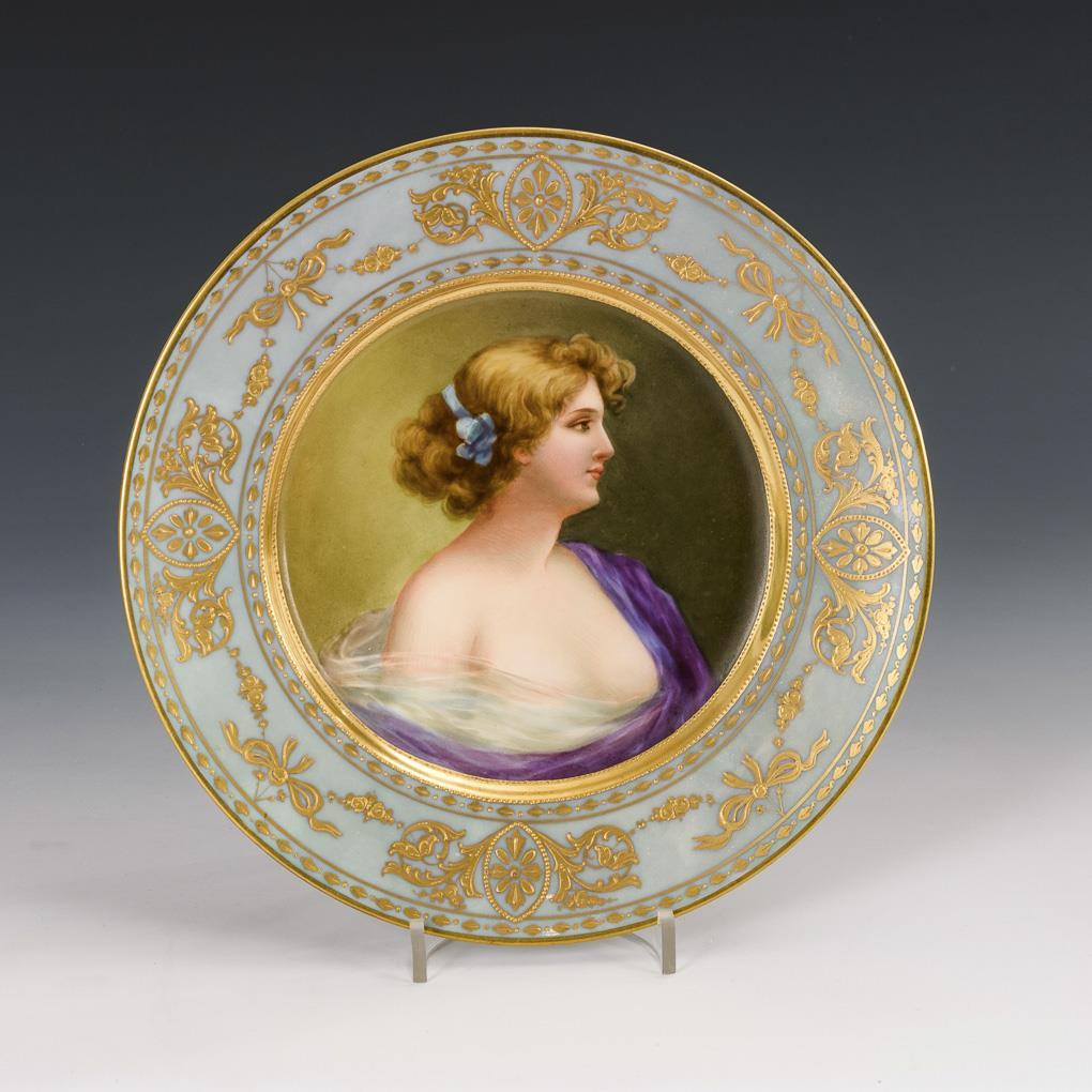 Polychrome painted, gold decorated. Ø 24,5 cm.