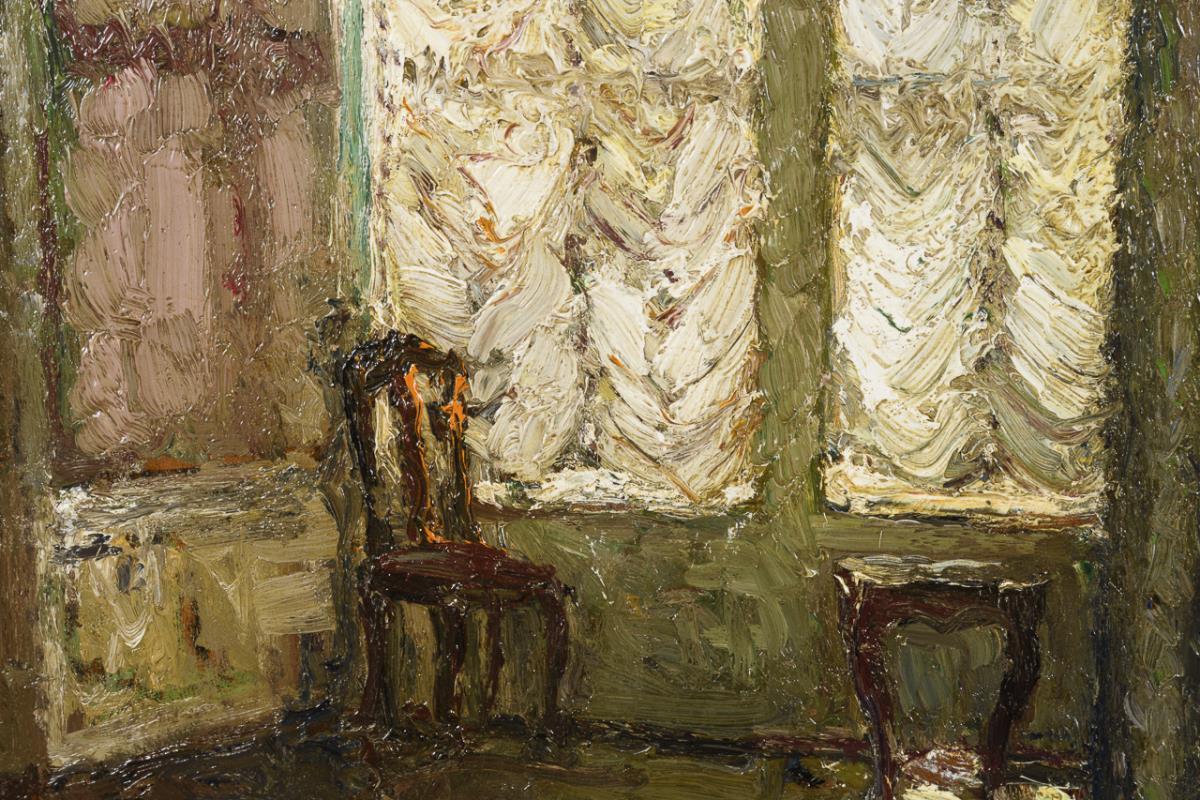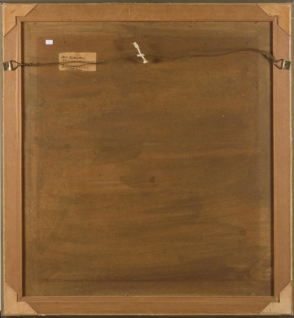 Oil/painted cardboard. Signed lower left, verso inscribed / titled.