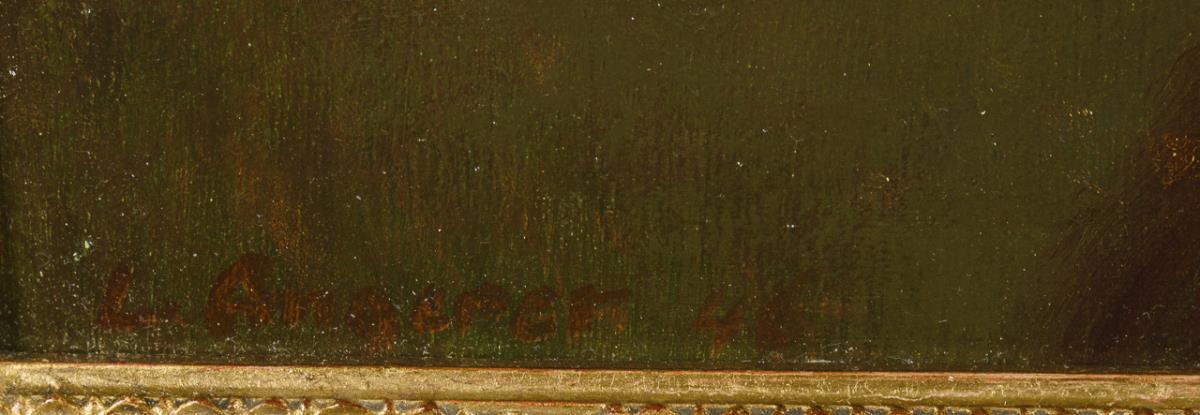 Oil/painted cardboard. Signed lower left. Dated: (19)46.