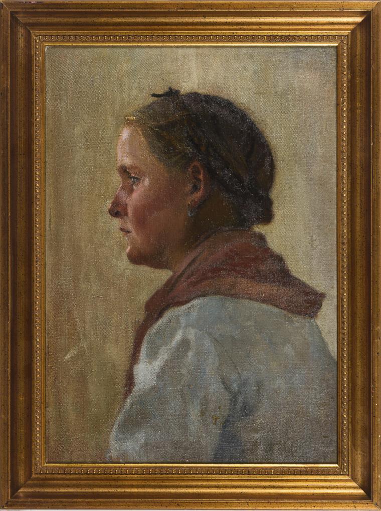 Portrait of a Young Woman with Braided Hair in Profile.