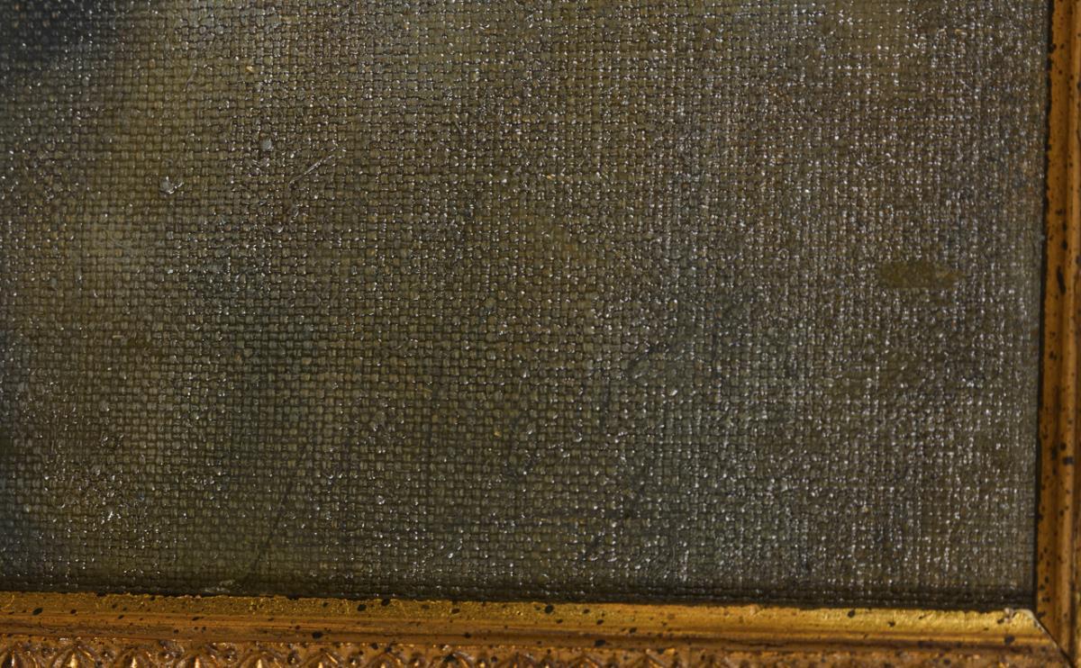 Oil/canvas/cardboard. Faintly signed at top right and bottom respectively.