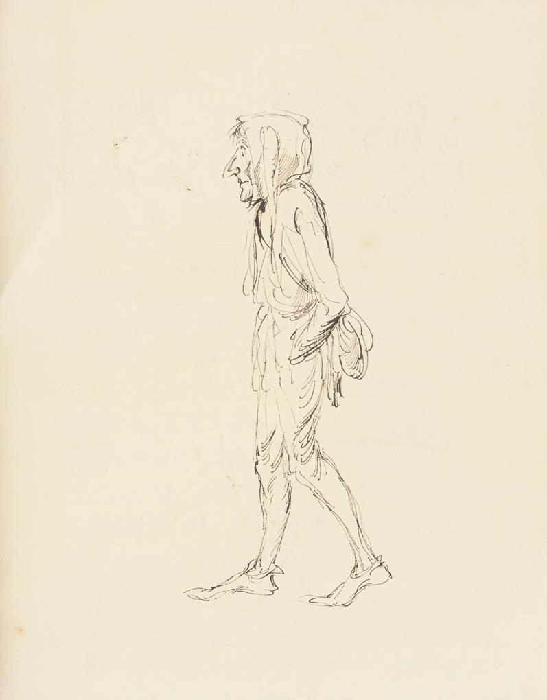 Recto: Jester observing a king in conversation with three peasants, verso: Study Jester. Somewhat foxed, corner upper right with small crease.