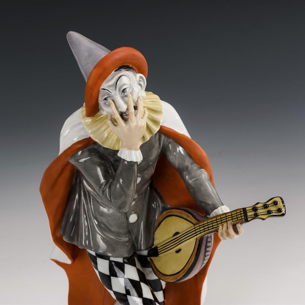 Pierrot with mandolin and hat. Left hand with mandolin neck restored.