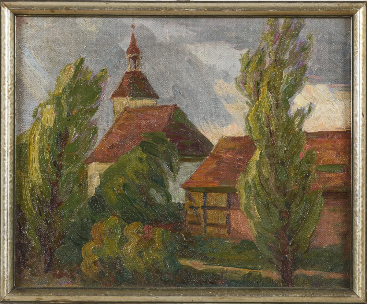 Oil/canvas/cardboard. Unsigned, inscribed/titled on verso.