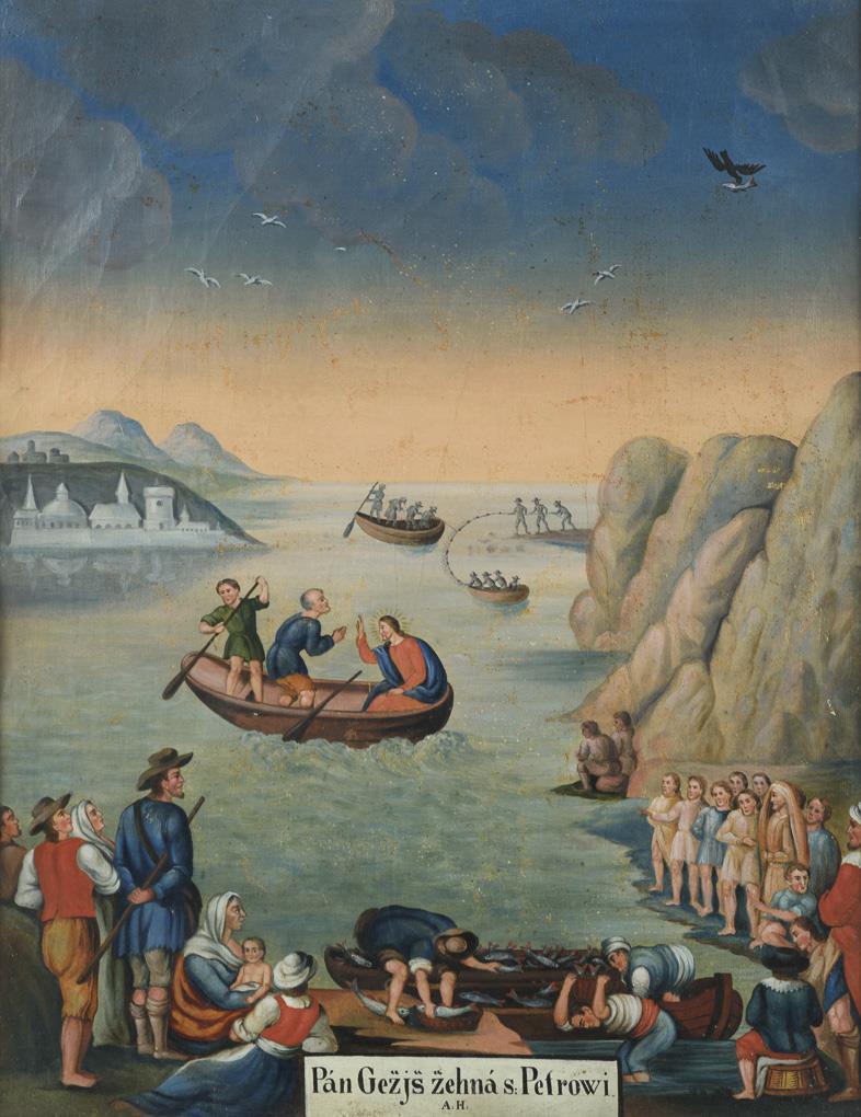 Christ with Peter and the fishermen. Traces of age.