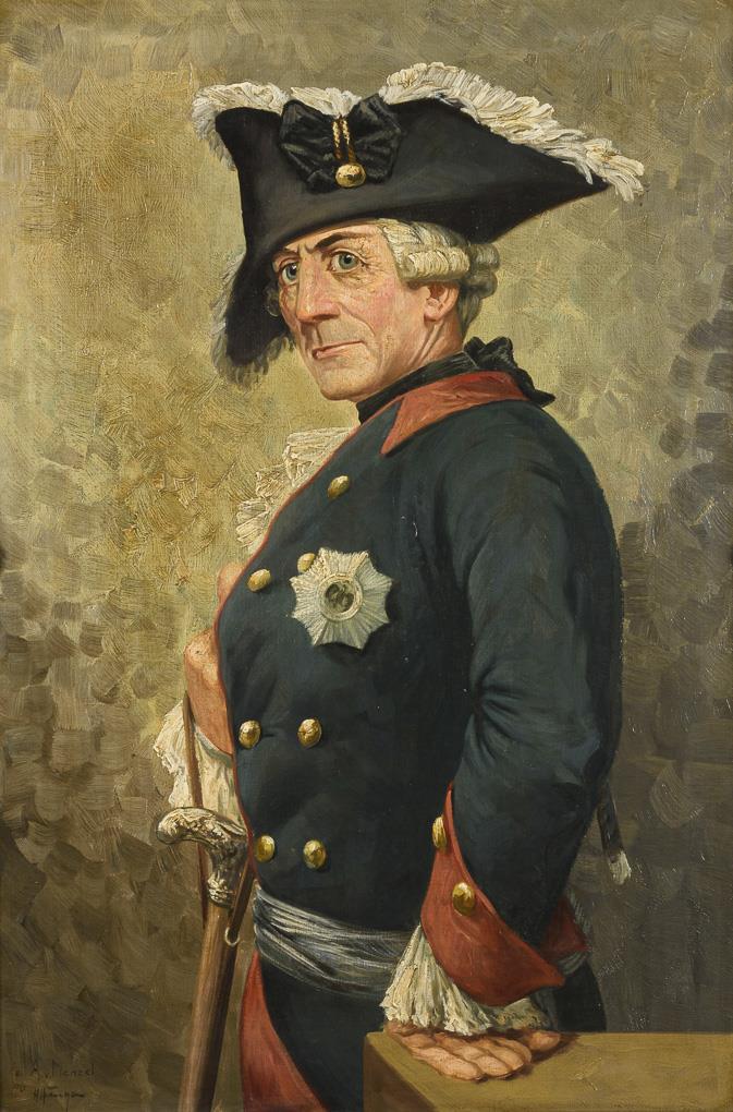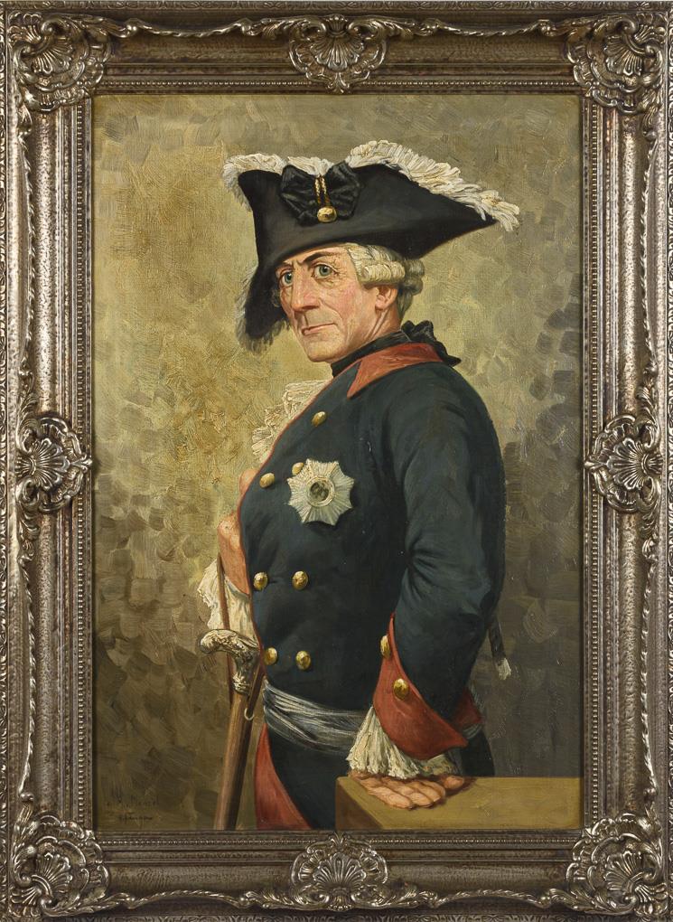 Good portrait of the Prussian king in typical blue uniform and with tricorn.