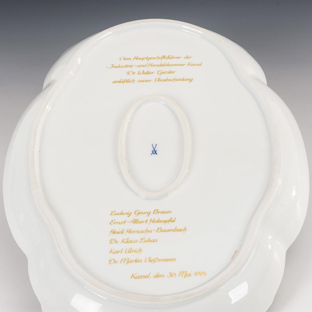Oval plate with loop handles. Verso a dedication to the farewell of a managing director of the Kassel Chamber of Commerce and Industry.