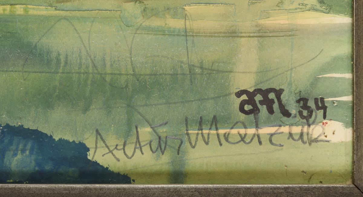 Watercolor. Indistinctly signed and monogrammed lower right. Dated: (19)34.