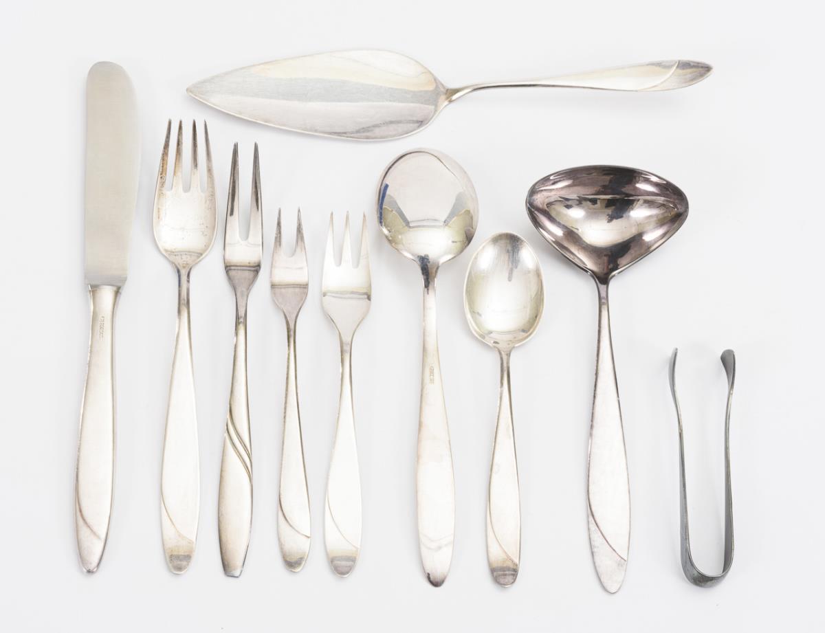 Comprehensive silver cutlery for 12 people. Görlitzer jewelry and silverware factory.
