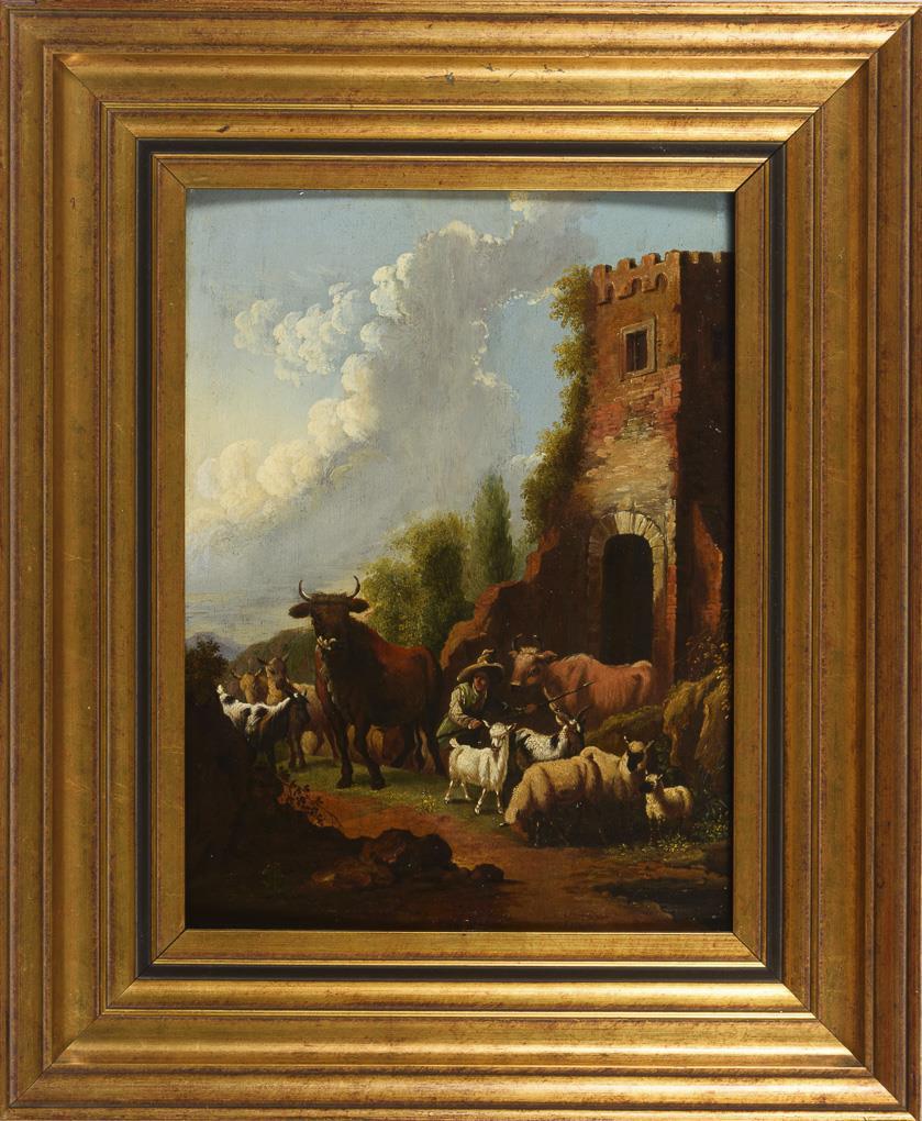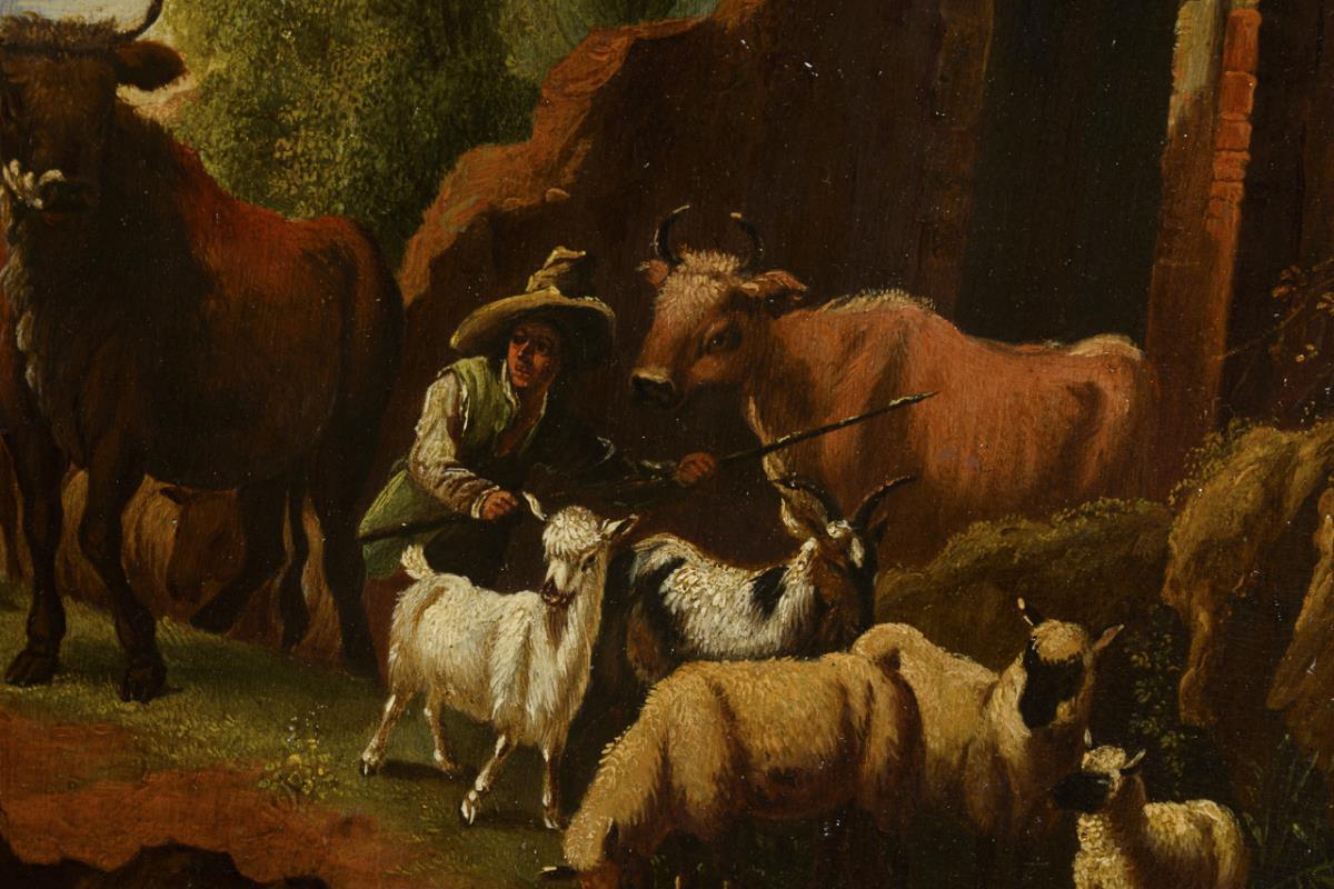 The Shepherd with the Animals at a Ruin in the Sunshine. Restored.