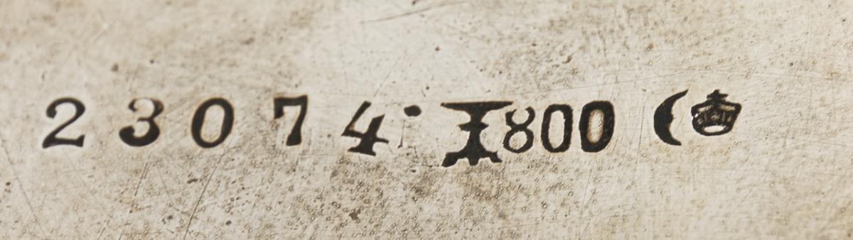 Company mark/800/crescent/crown hallmarked. Circa 1900. model number 23074.