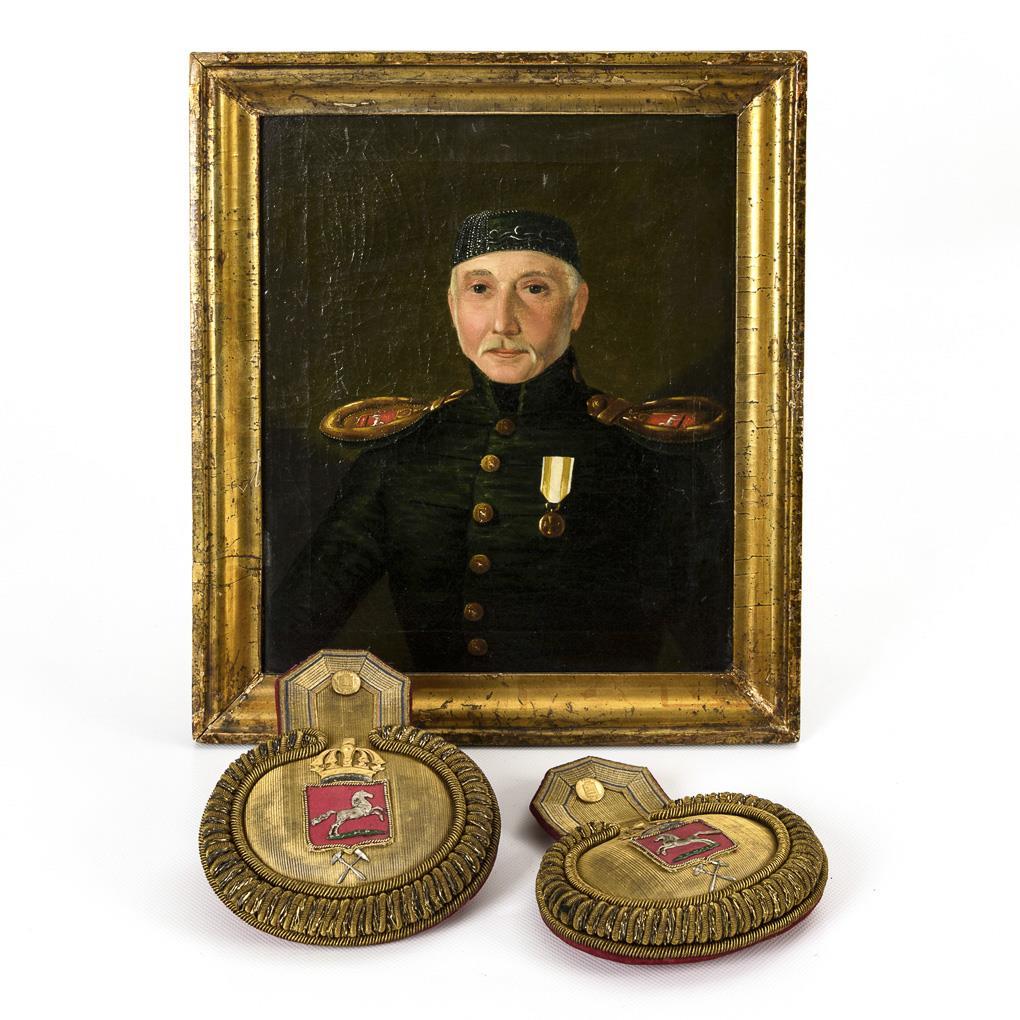 Mining officer painting and a pair of epaulettes.