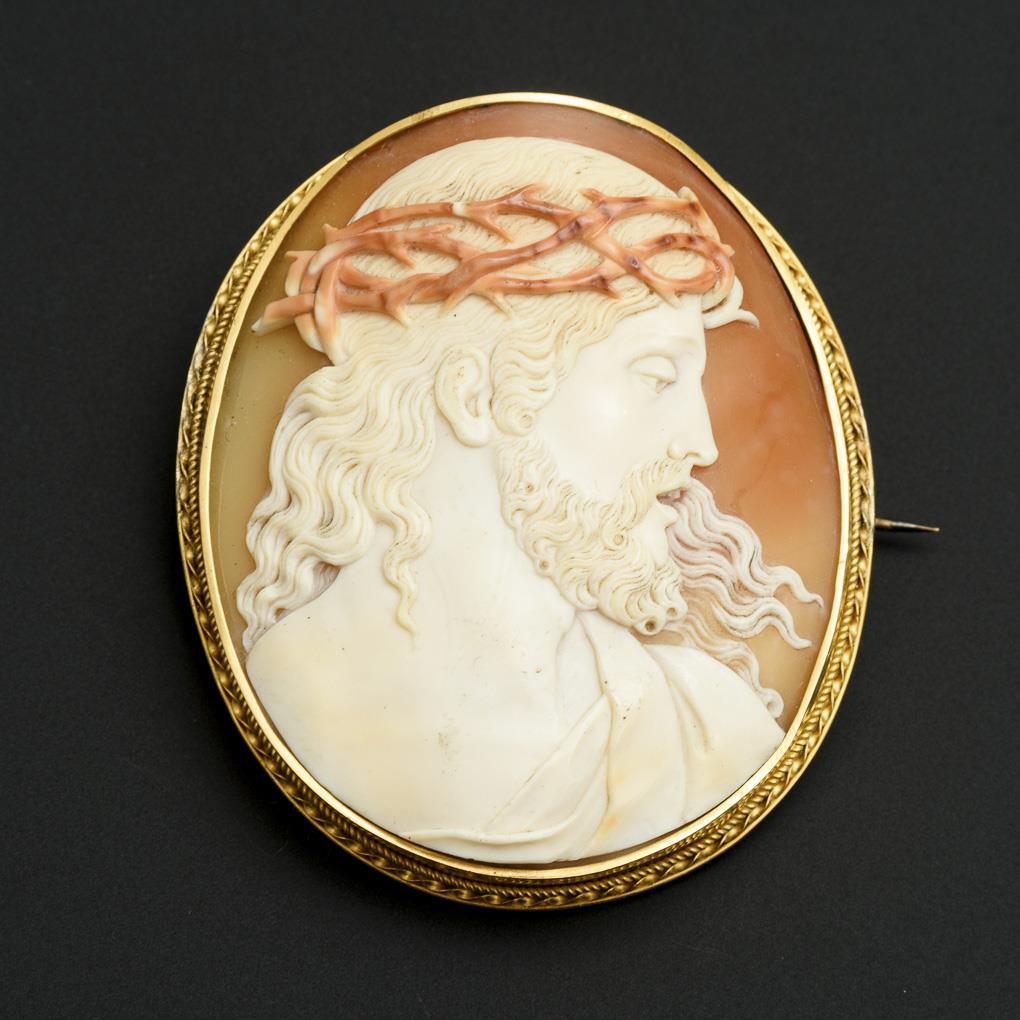 You are here:   Home Categories Jewelry Kunstvoll geschnitze große Kamee mit Christuskopf, Goldfassung mit Meessingnadel