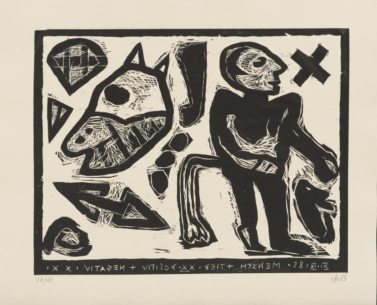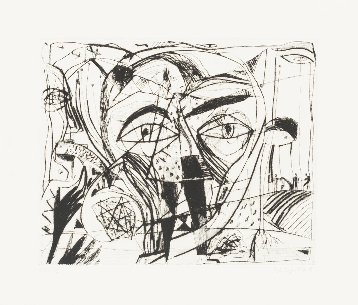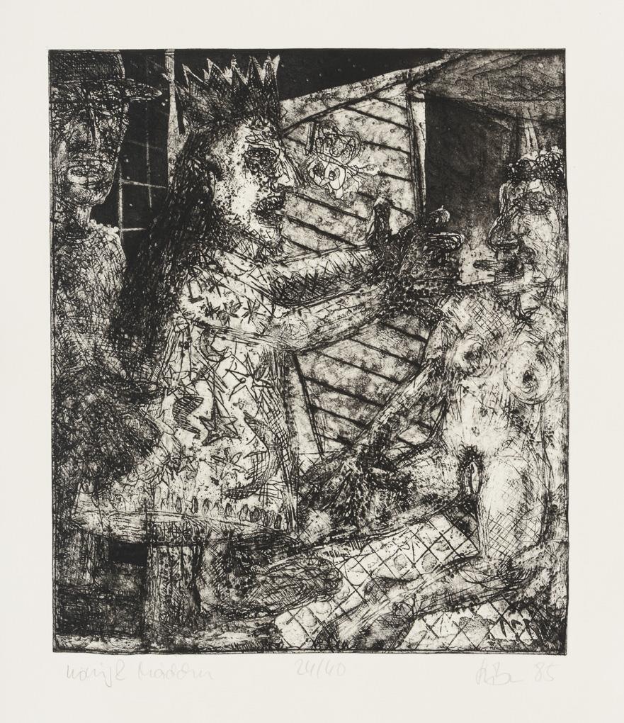 4 (color) woodcuts, 12 (+2) etchings (of which 1x also printed on verso and 1x with 2 printing plates) , 1 color silkscreen. Each with pencil signature. 1985/1986. copy: 24/40 (slipcase with incised numbering), edition of the Dresdner Obergrabenpresse.