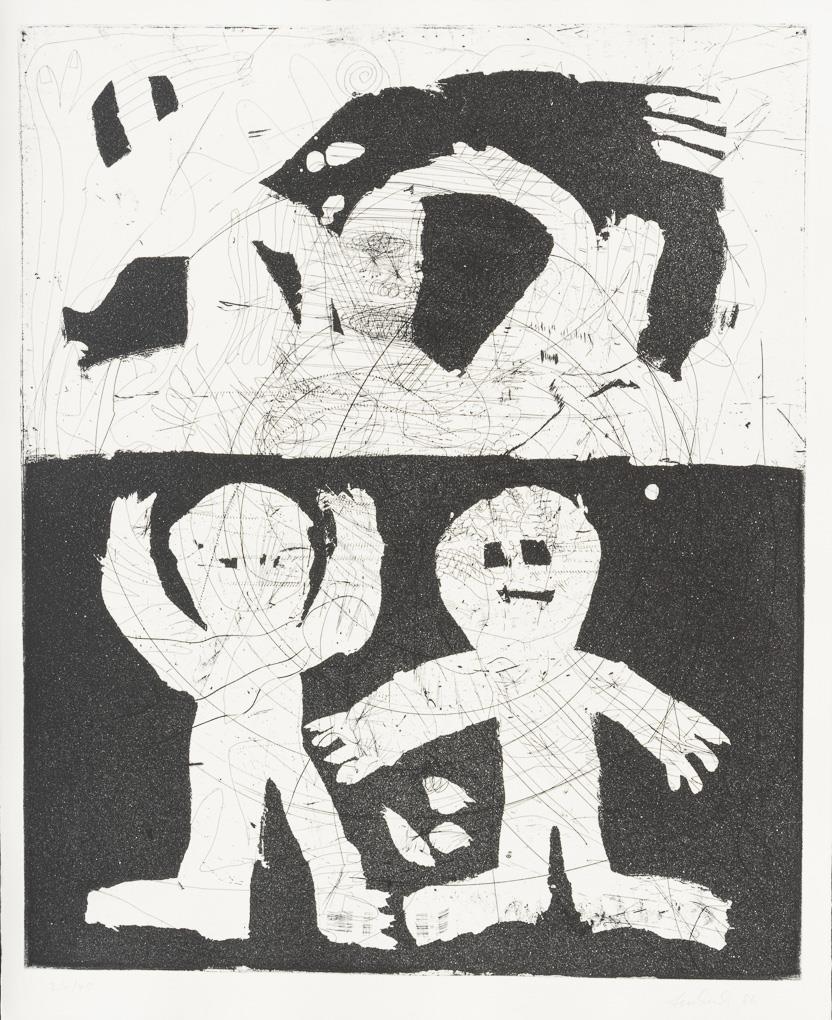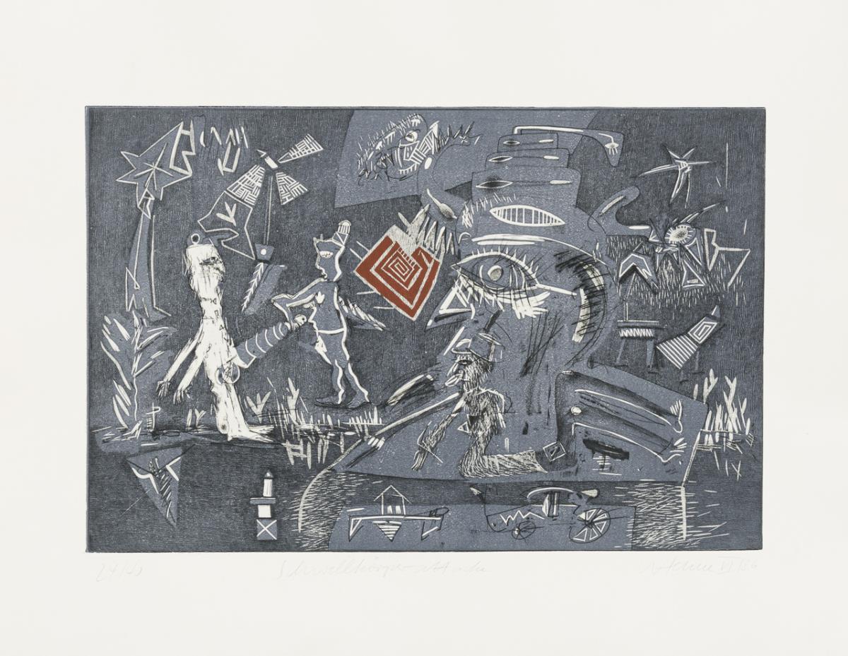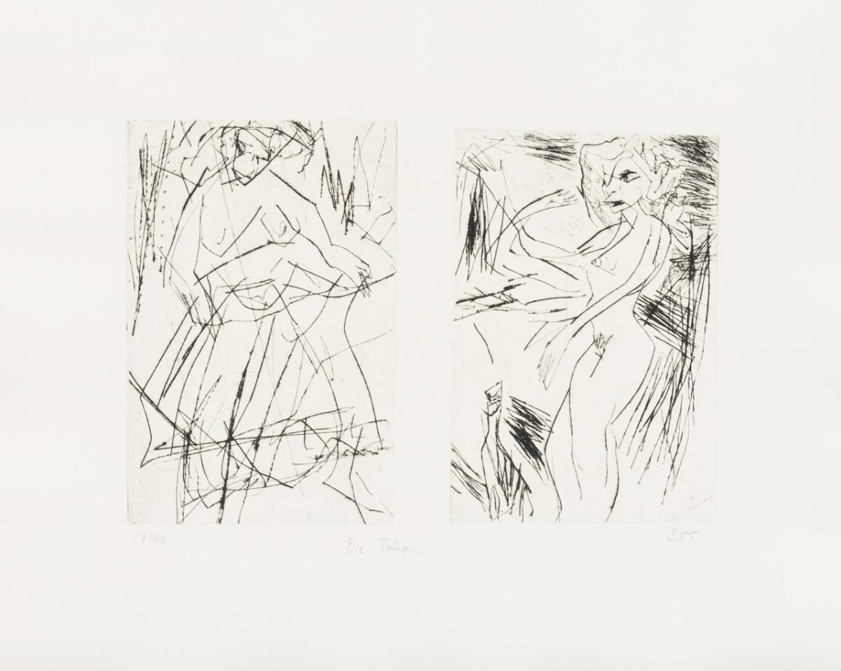 4 (color) woodcuts, 12 (+2) etchings (of which 1x also printed on verso and 1x with 2 printing plates) , 1 color silkscreen. Each with pencil signature. 1985/1986. copy: 24/40 (slipcase with incised numbering), edition of the Dresdner Obergrabenpresse.