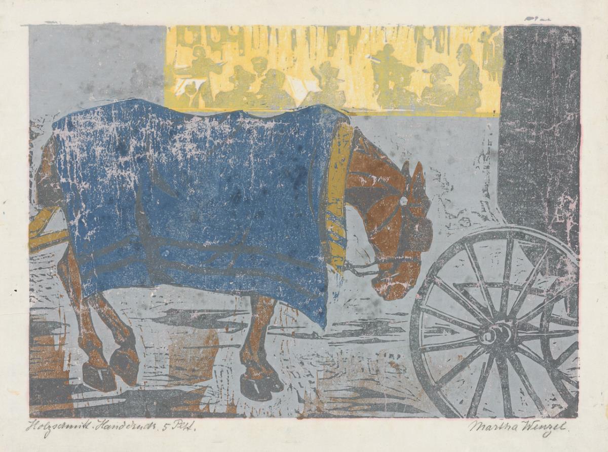 |Supplement 27.02.22: Title reads "In front of the cafe". Strongly grip-marked, somewhat stained.