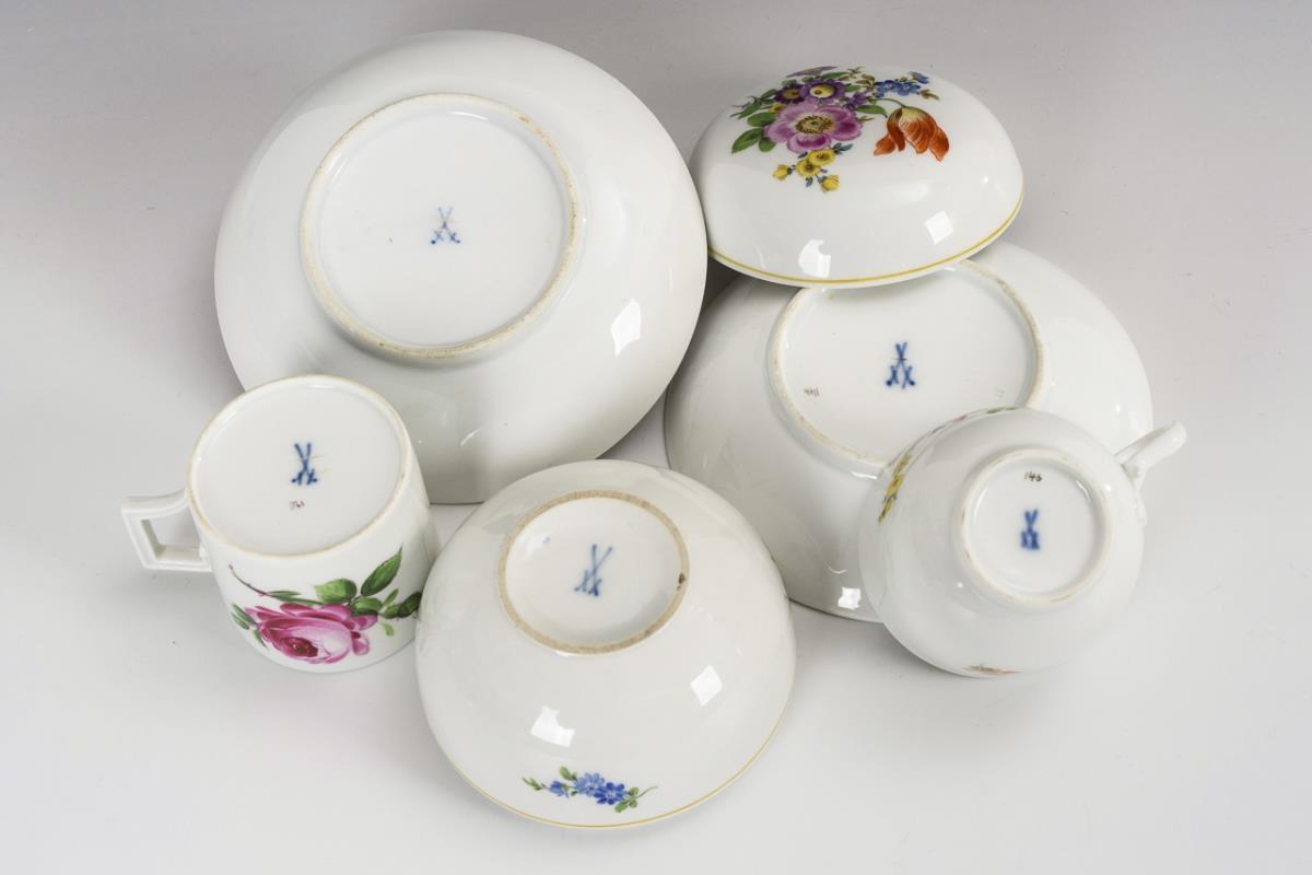 2 demitasse cups and 1 sugar bowl. Meissen.