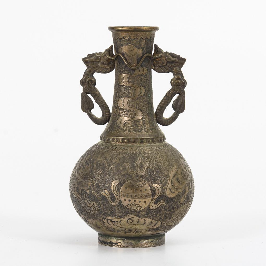 Engraved dragon ornament and two small handles, also with dragon motif .