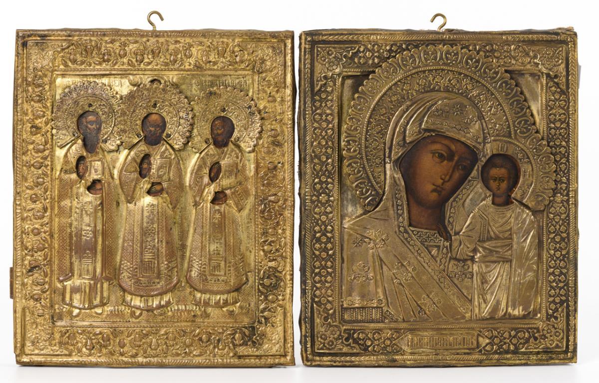 Je egg tempera/wood, brass oklad. Russia. Late 19th century