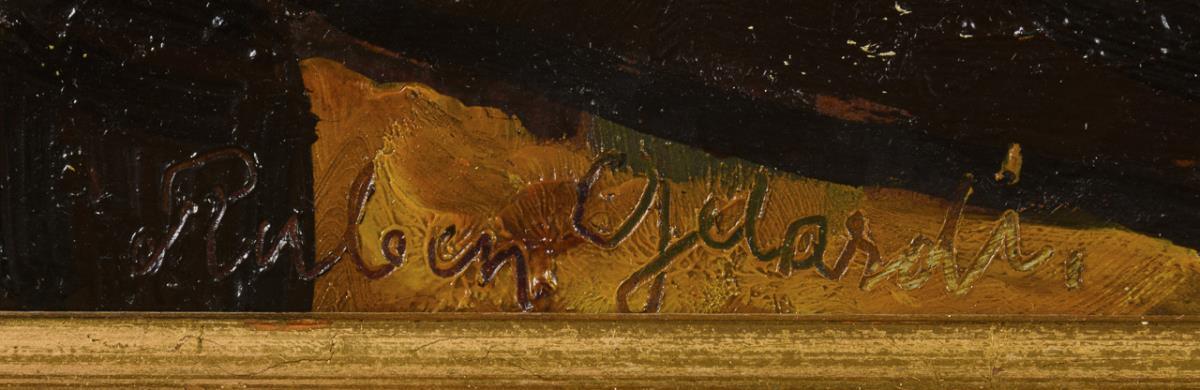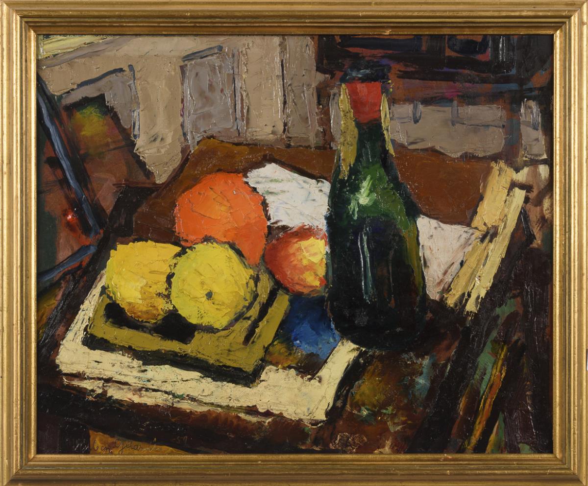 Oil/painting cardboard. Signed lower left. Dated: (19)59.