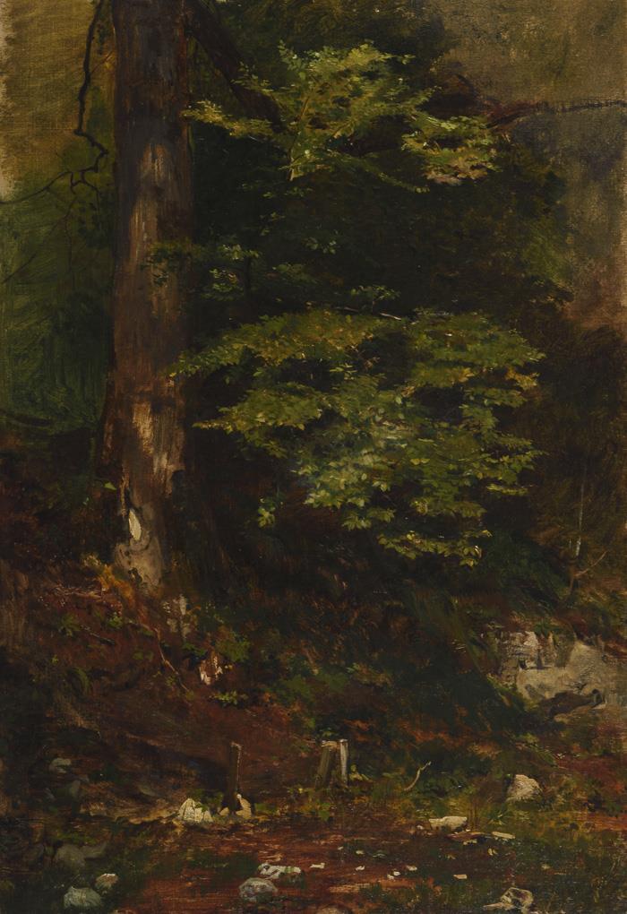 Forest slope with tree on the shallow bank