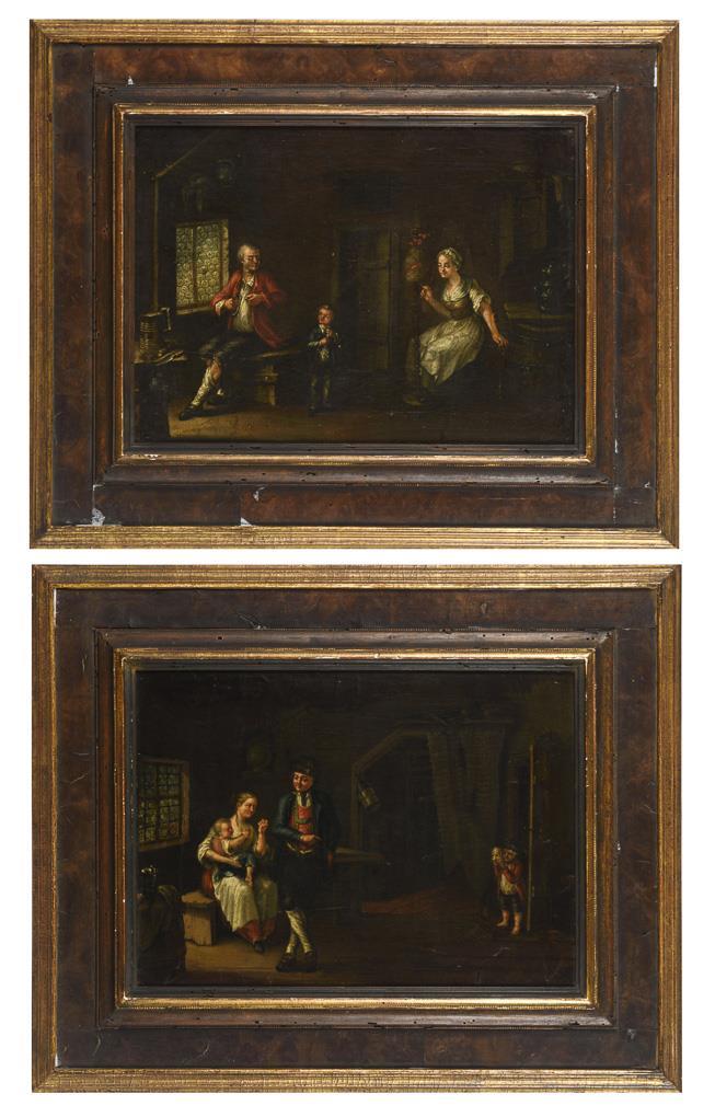 Family in the parlor with the mother and father at work and family with two children in the poor parlor. Each canvas mounted.
