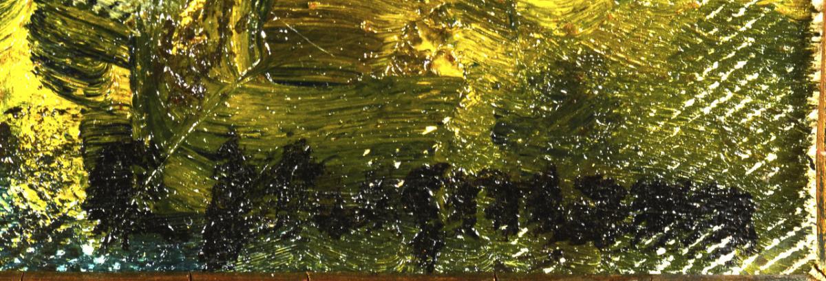 Oil/canvas/cardboard. Indistinctly signed lower right. Circa 1900.