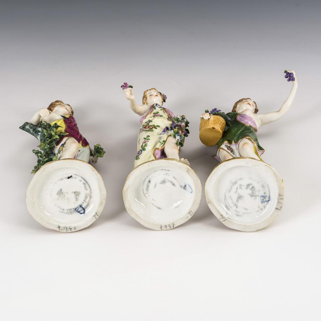 3 antique dressed female figures, including as spring and autumn. Partially leaves bumped.