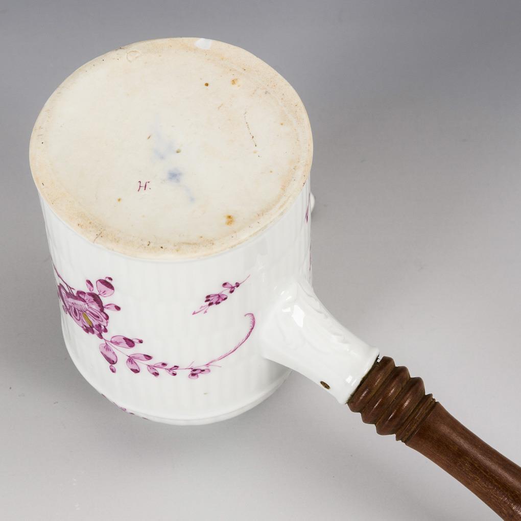Small cocoa pot with purple painting. Meissen.