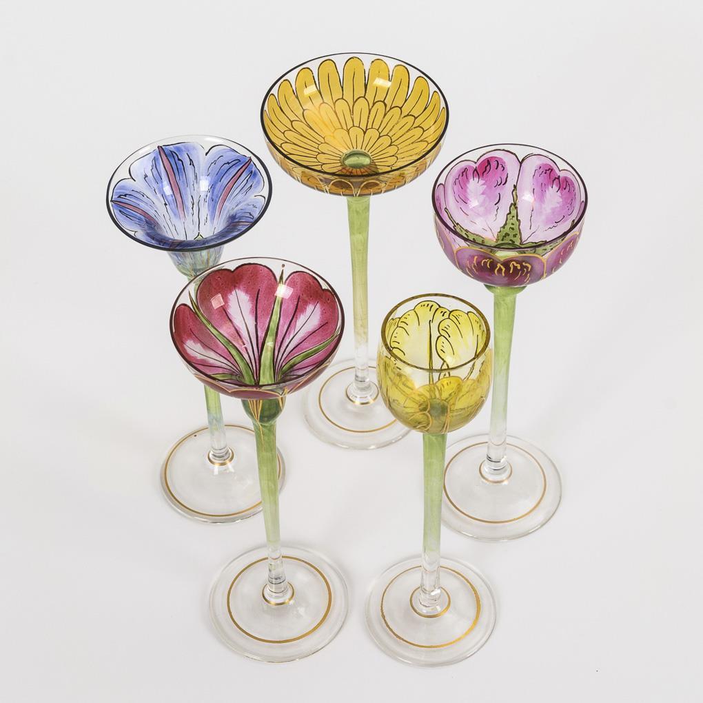 5 Art Nouveau Liqueur Glasses. Fritz Heckert.