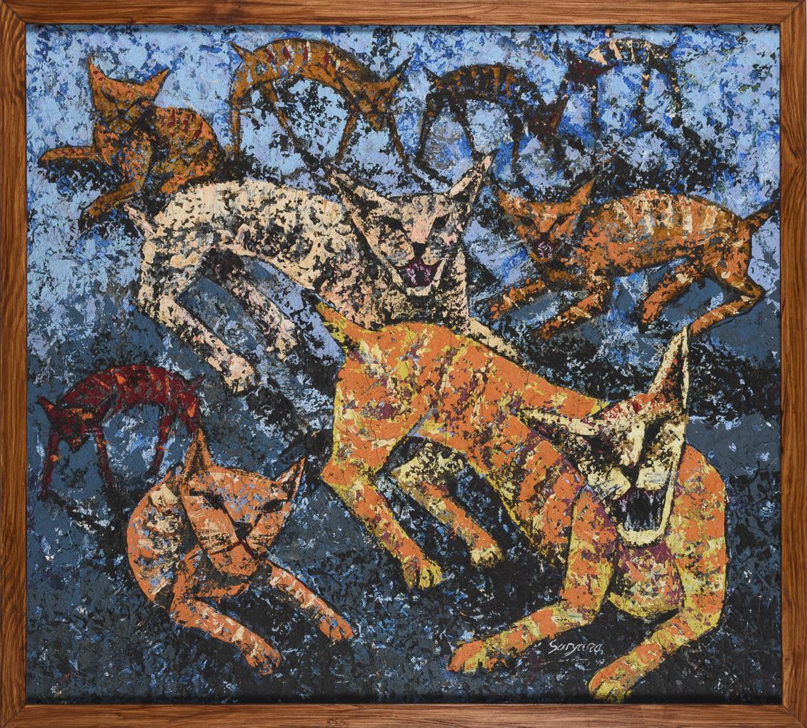 Tempera / canvas. Signed lower right. Dated: (19)97.
