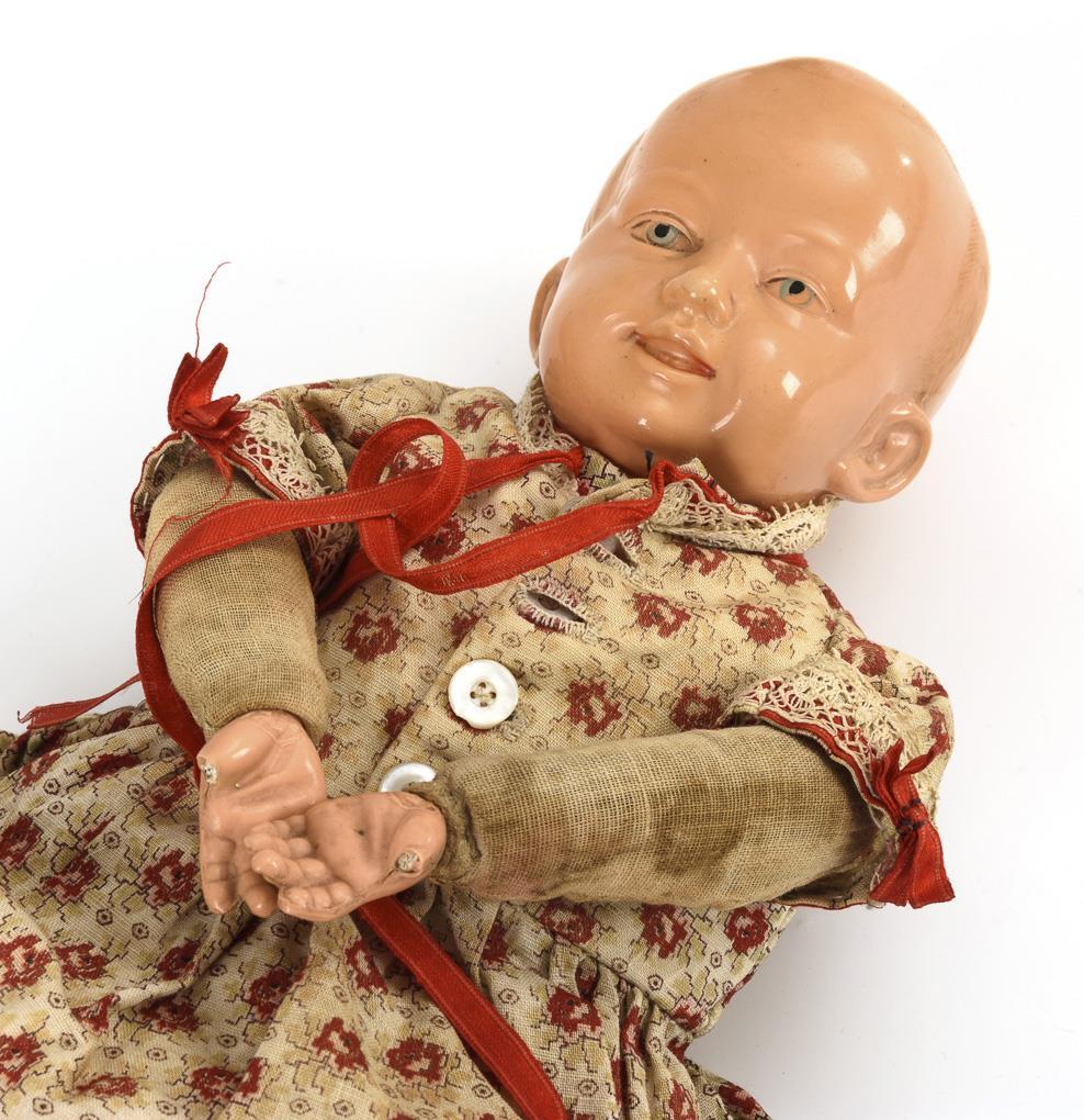 Delicate character doll and baby turtle. 1x Baehr & Proeschild, for Bruno Schmidt.