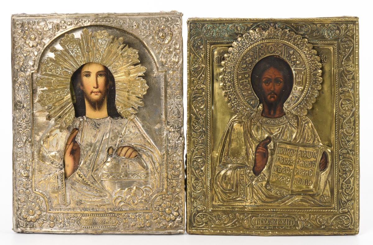 Each depicting Jesus Christ with Holy Scripture or globe. Traces of age.