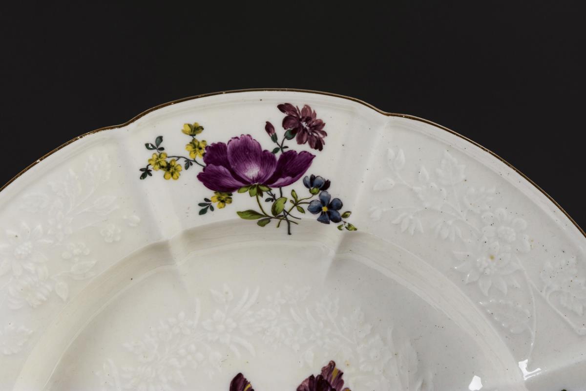 Form "Gotzkowsky". Soup plate with floral bouquets in the mirror and on the flag. Minimal touch of ash, 1x minimal edge chip.