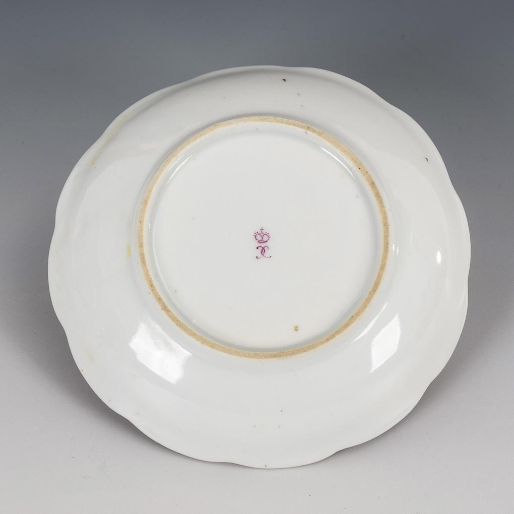 Polychrome painted, gold decorated. Ø 14 cm.
