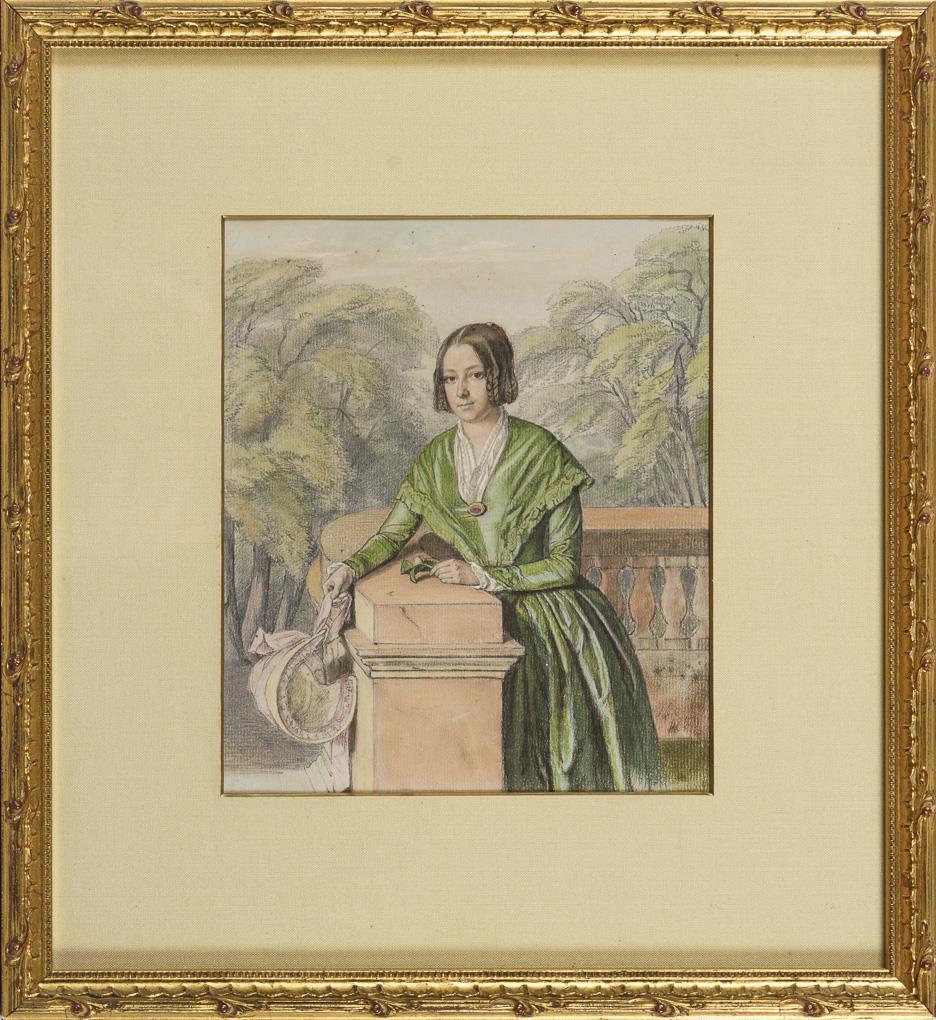 Picture painter 1st half 19th century: Young woman at balustrade