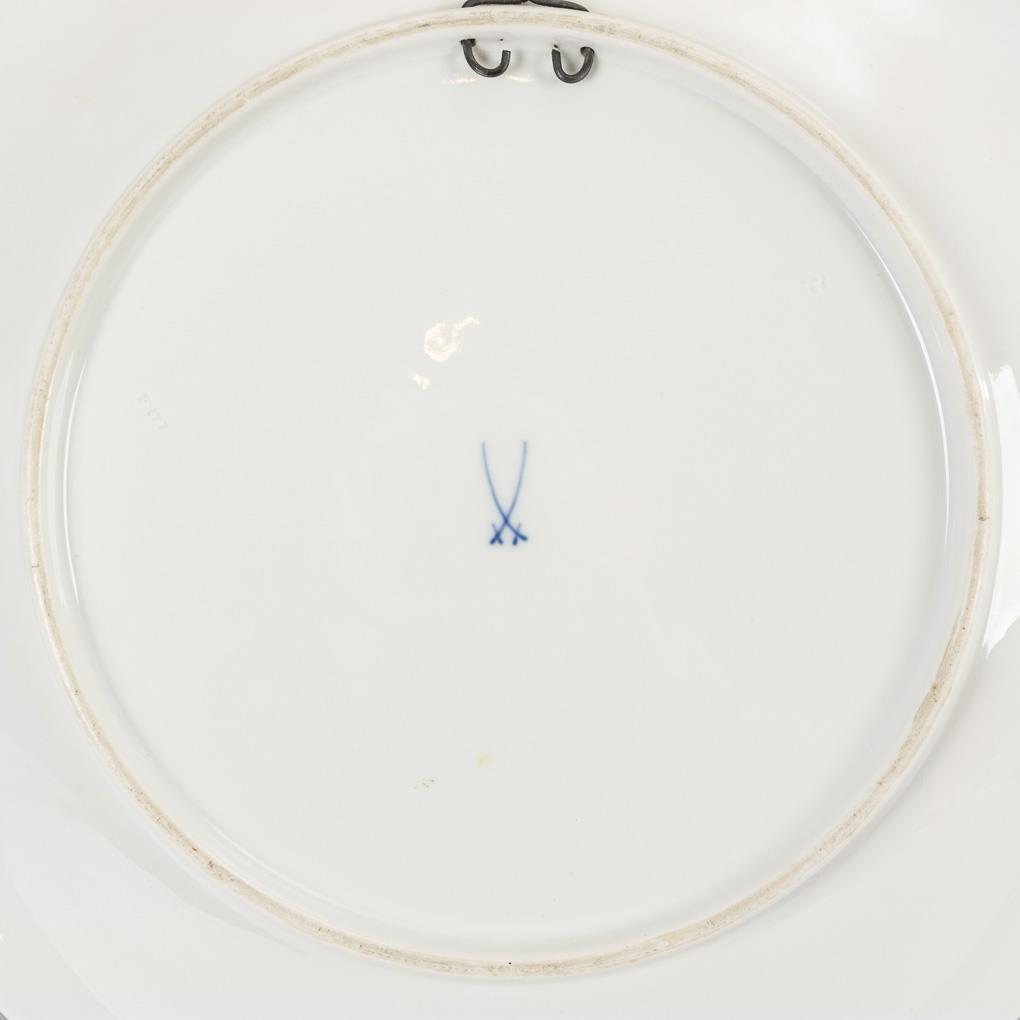 Large plate depicting a Watteau scene with Pierrot and tambourine player.