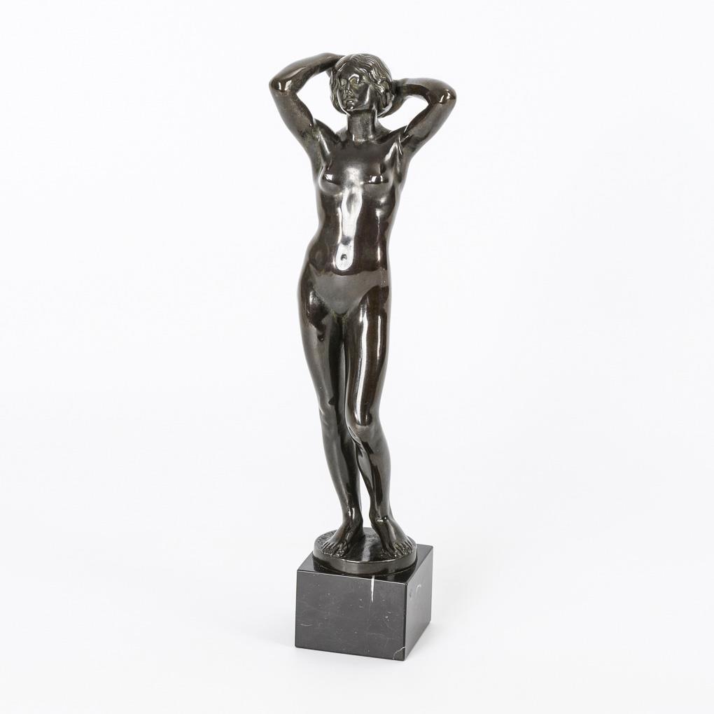 Copper galvanoplastic black patina, black marble base. Inscribed. H 29 / 34 cm.