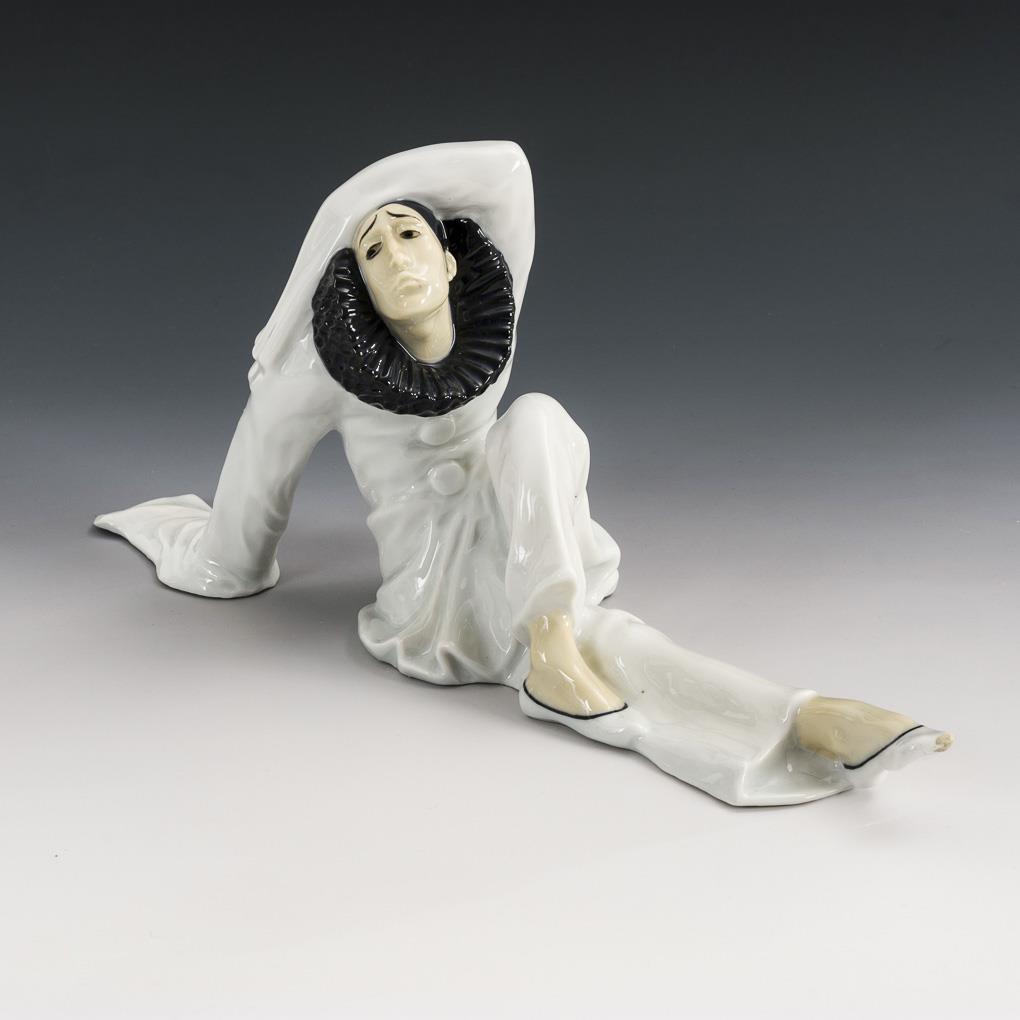 Sitting, sad-looking Pierrot. Right foot tip probably beschliffen.